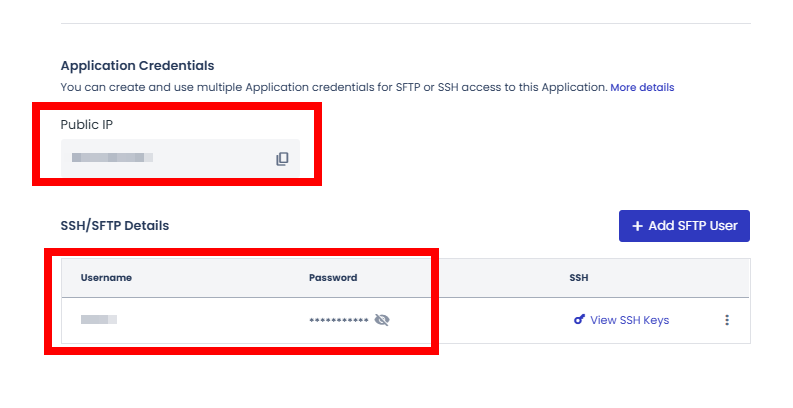 3. access details -하단 SSH/SFTP Details