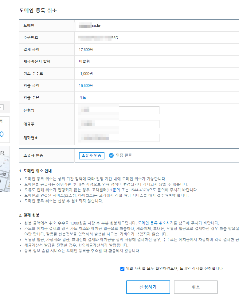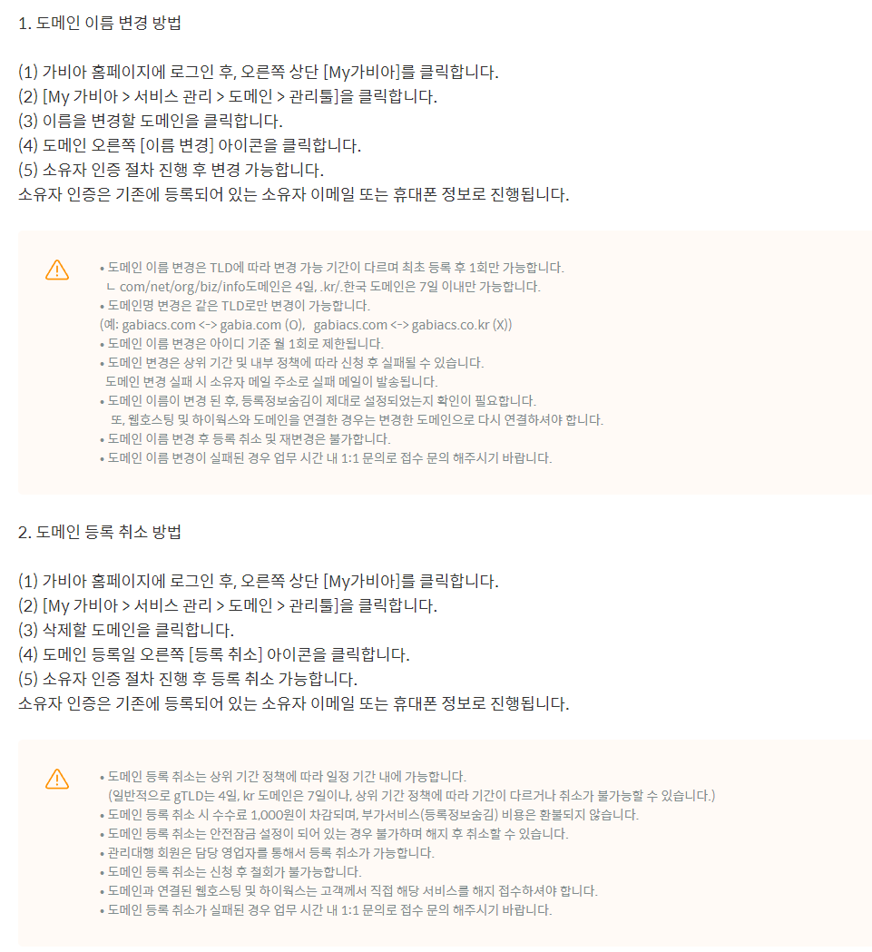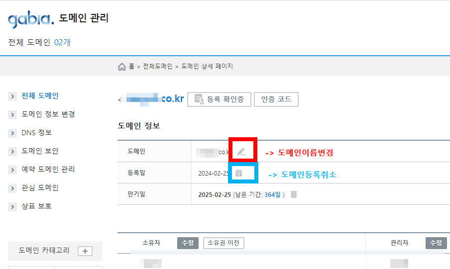 2024.02.26 가비아 도메인 이름변경 & 도메인취소