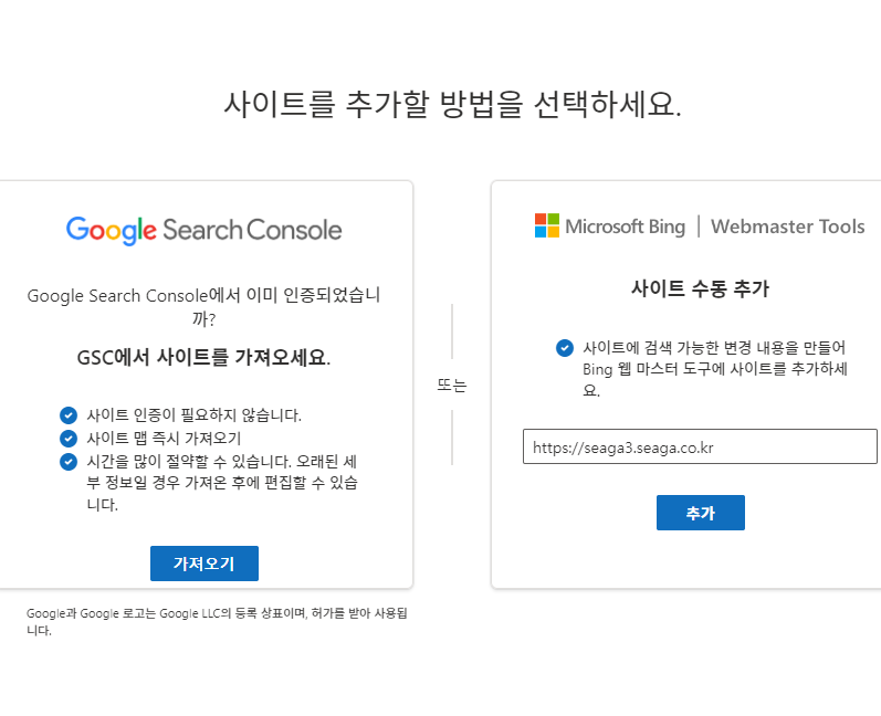 https://www.bing.com/webmasters/home?siteUrl=https://seaga.co.kr/