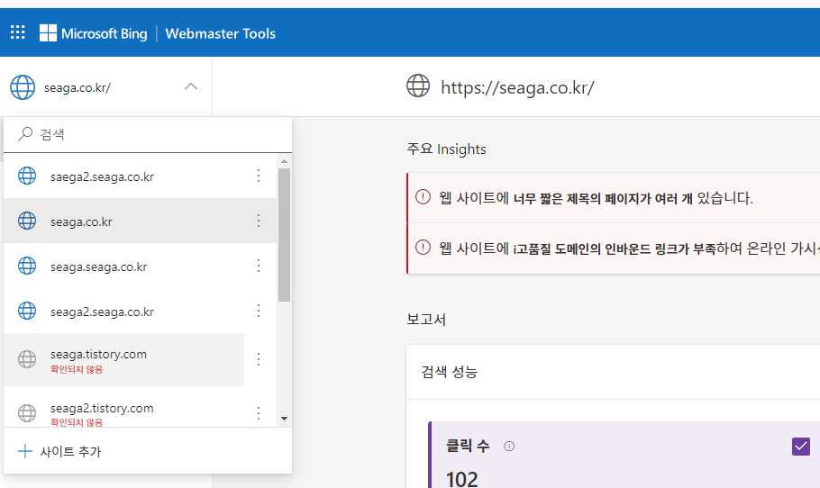 https://www.bing.com/webmasters/home?siteUrl=https://seaga.co.kr/